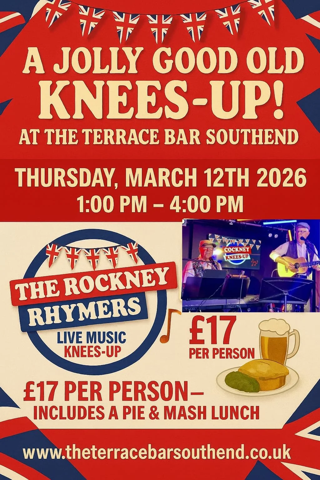 Part of our Thursday Lunch and live at the terrace we present an afternoon of the Rockney Rhymers with some good old knees up mother brown.